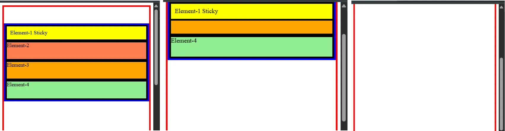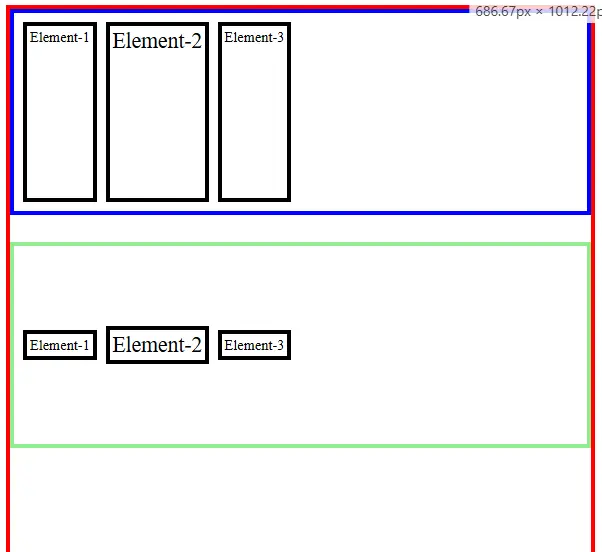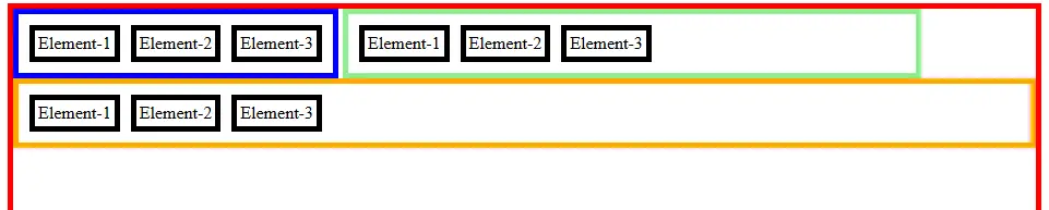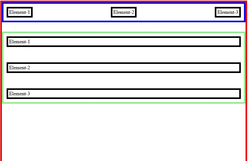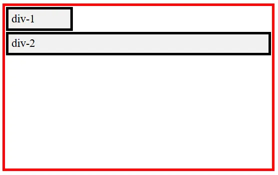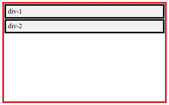 Hasilnya Div-2 berada pada baris yang berbeda karena elemen div secara default memiliki display: block. Perilaku block akan membuat setiap elemen selalu dimulai pada baris baru ketika dirender oleh browser.