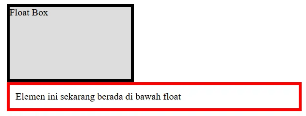 Elemen ini sekarang berada di bawah float